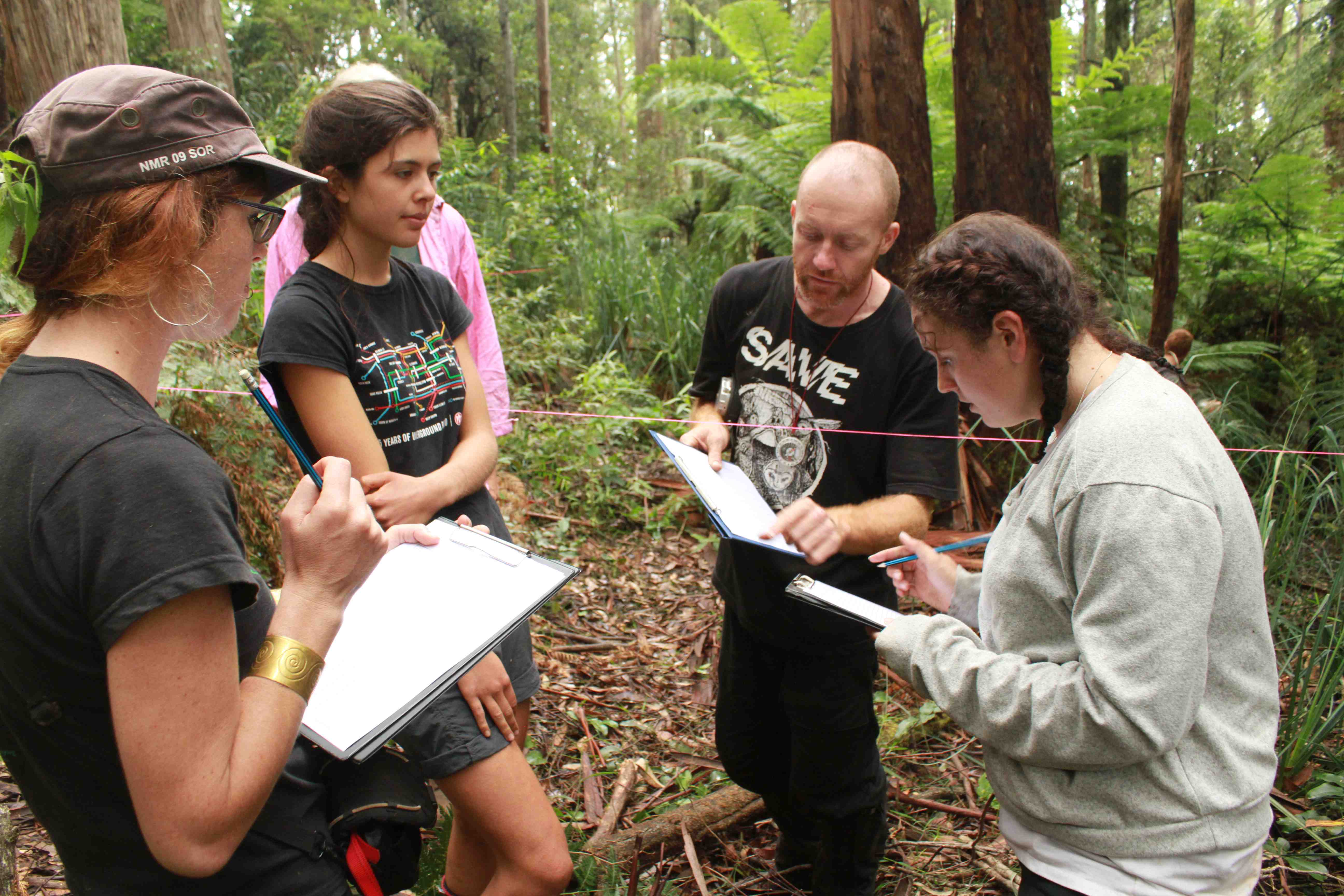 Regular educational forest survey camps based in Goongerah are organized by GECO, with participants learning about forest ecology, logging threats and ecological survey skills.